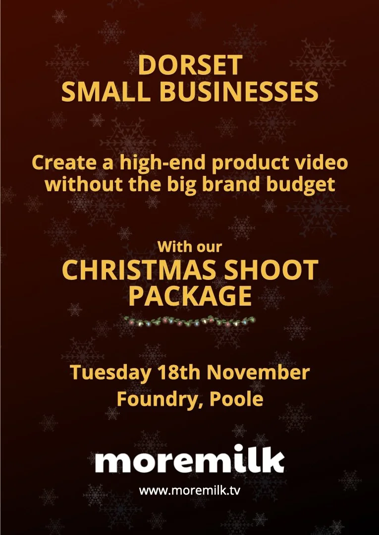 If you have a product to promote, on Tuesday 18th November I’ll be opening up moremilk to collaborate with three Dorset businesses to shoot and deliver high quality product videos – ideal for promoting on socials in the run-up to Christmas.
